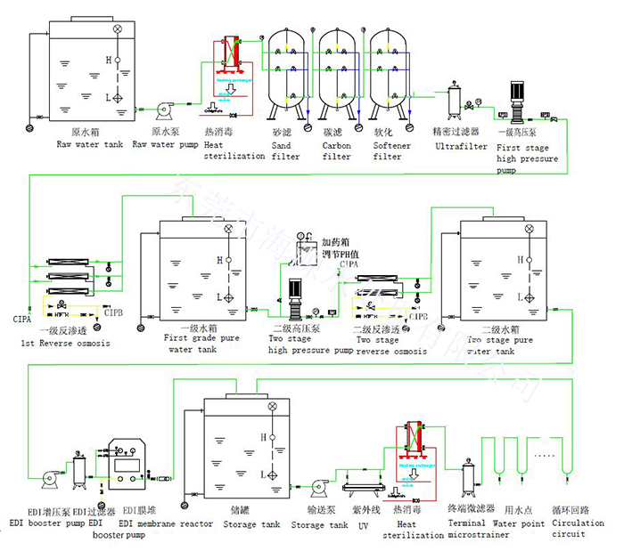 綠色除鹽過程:預(yù)處理-反滲透-EDI連續(xù)電除鹽