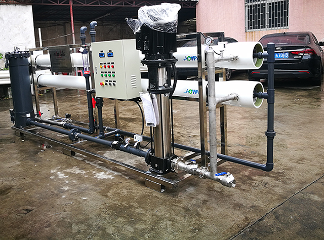 反滲透除鹽設(shè)備是利用反滲透膜(RO膜)技術(shù)將源水中溶劑和溶質(zhì)分離,RO膜可阻擋所有溶質(zhì)與無機分子及任何分子量大于100的有機物,溶鹽之脫鹽率可達到99%,從而達到降低鹽量除鹽的目的。一般進自來水,一級反滲透產(chǎn)水電導率10µs/cm以下,二級反滲透產(chǎn)水電導率5µs/cm以下,最好能做到1µs/cm。對出水電導要求高的,可以采用EDI電除鹽系統(tǒng)和原子級離子交換柱過濾,出水電阻率可以達到18.2MΩ.cm。
