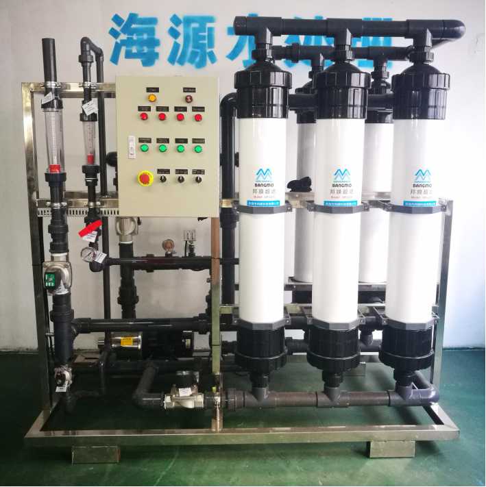 超濾水處理設備是指原液通過過濾、UF超濾膜分離技術(shù),將溶液中的大分子、膠體、微粒與溶劑小分子物質(zhì)進行分離,使大分子、膠體和微粒等被截留于膜表面,由物質(zhì)循環(huán)流動帶走濃縮液,達到物質(zhì)分離、濃縮和提純的目的。