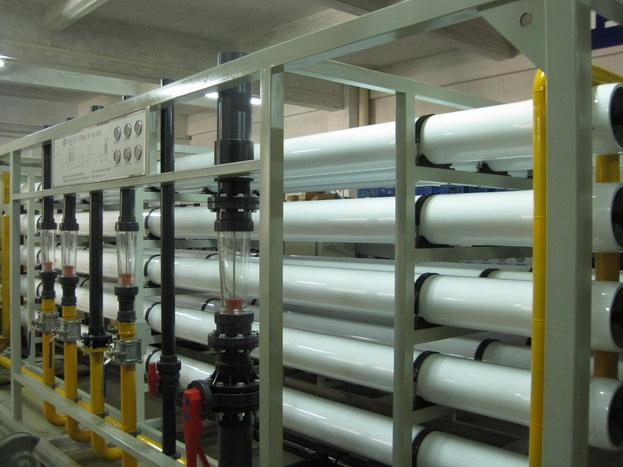 反滲透是當今先進和有效的除鹽技術。其原理是在壓力的作用下,水分子透過RO膜成為純水,水中的雜質被RO膜截留排出。在水處理工藝中,可以去除水中的溶解鹽、膠體、細菌、病毒、有機物等雜質,是目前水質深度凈化的一種先進、經濟的手段。系統(tǒng)除鹽率一般為9799%。一級反滲透出水電導率可以達到10US/CM。